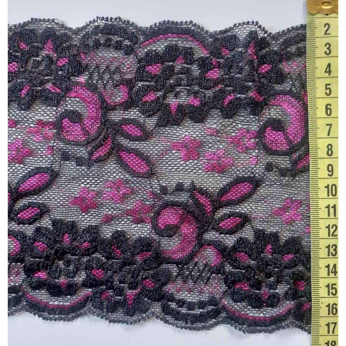 Мереживо еластичне, ширина 15 см чорно-малиновий