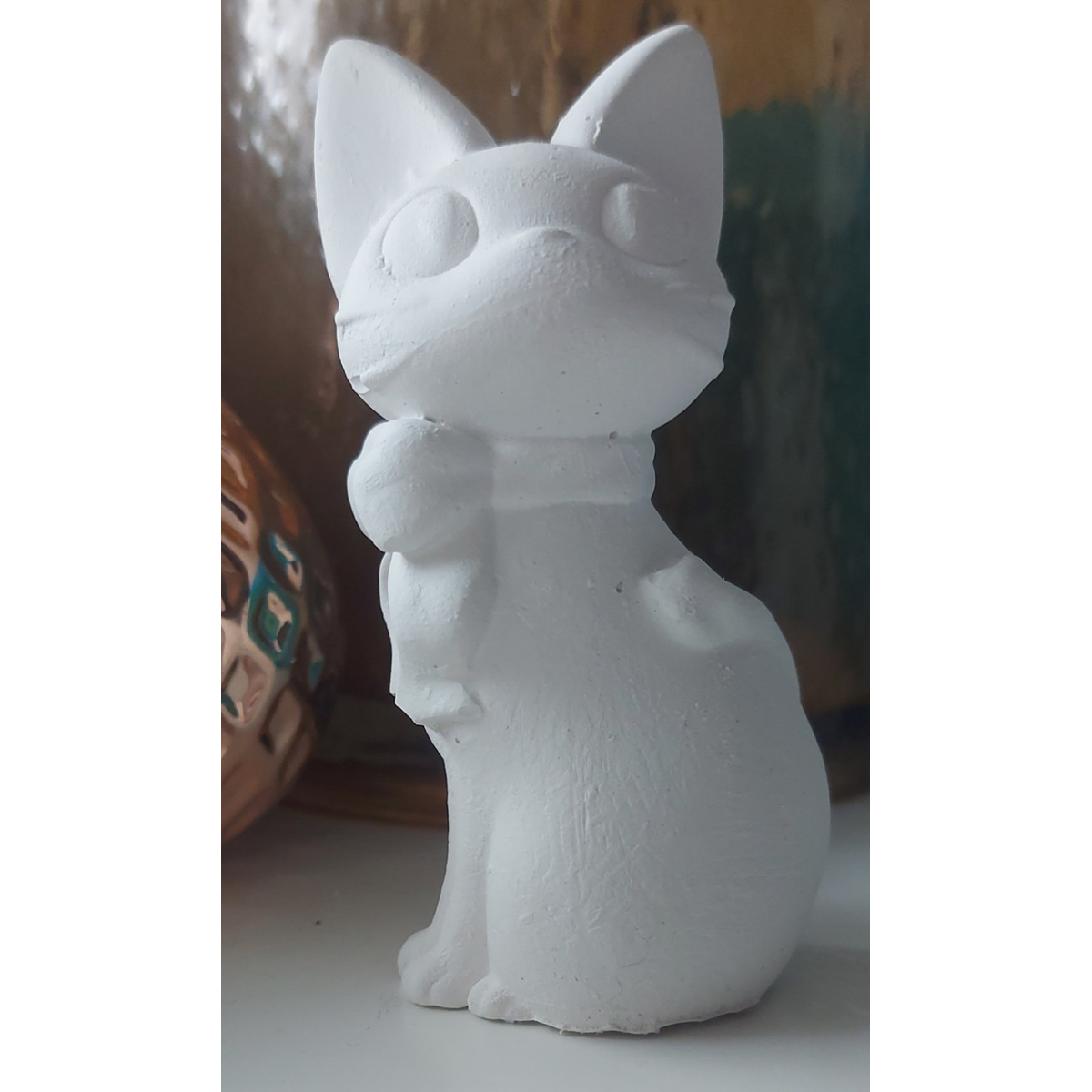 Гіпсова фігурка для розмальовування. Котик із бантиком.