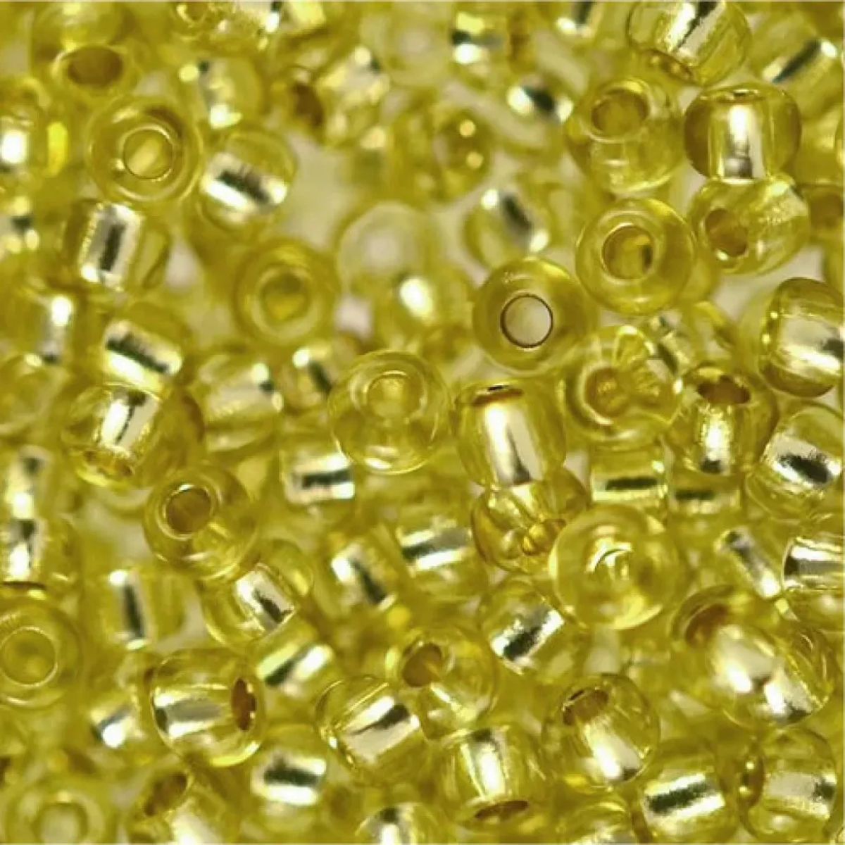 Прозорий бісер із кольорового скла без додаткового покриття.