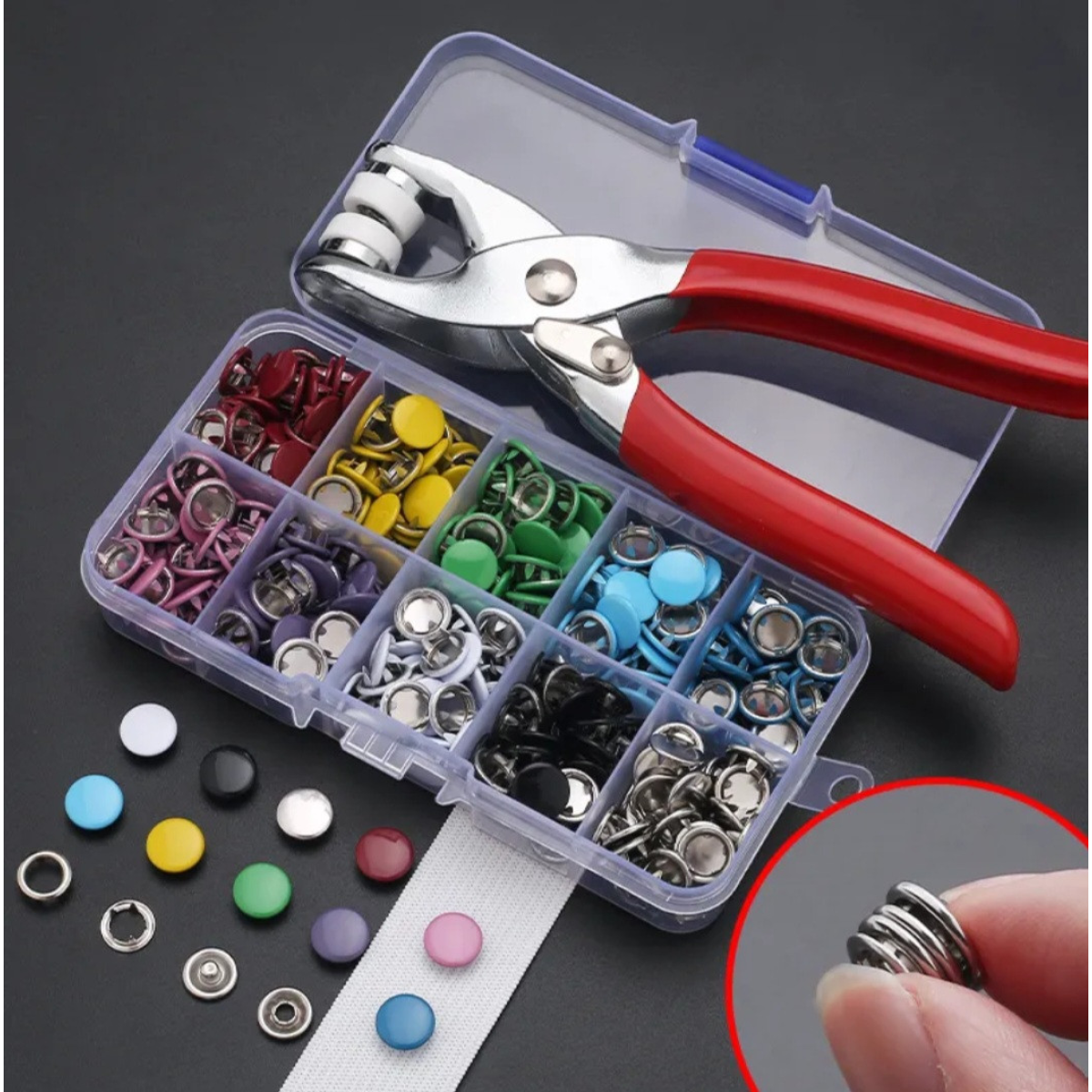 Пристрій для встановлення кнопок 2 мм-10 мм. У наборі 50 різнобарвних кнопок в органайзері.