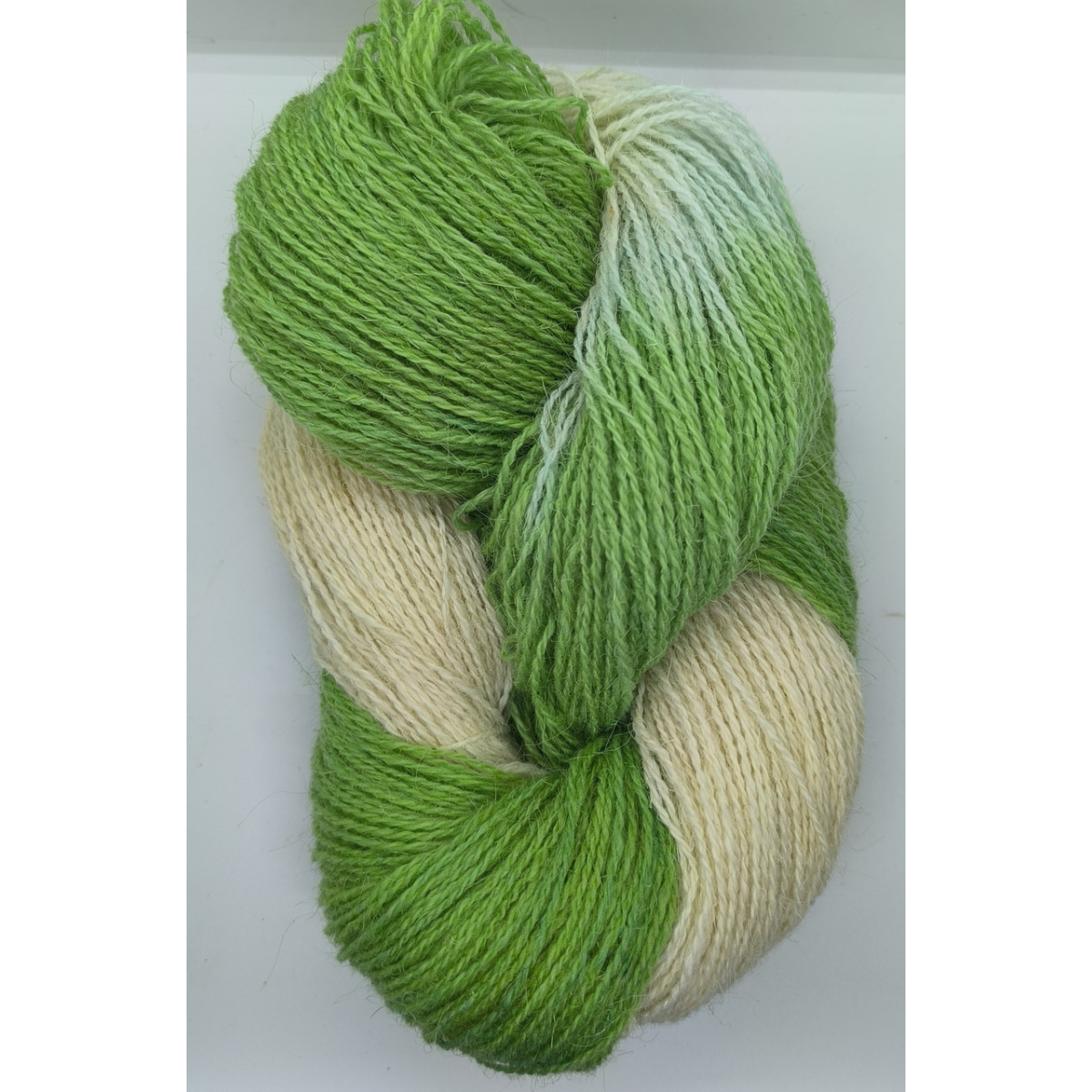 Пряжа Северня зелено-біла. (Домашнє фарбування)