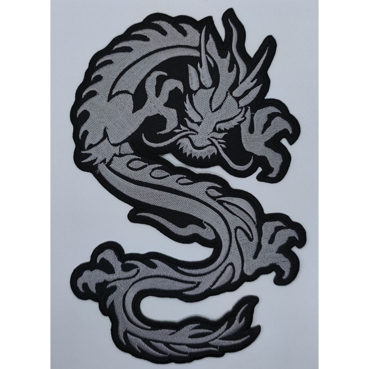 Аплікація для одягу байкерська. Срібний дракон.