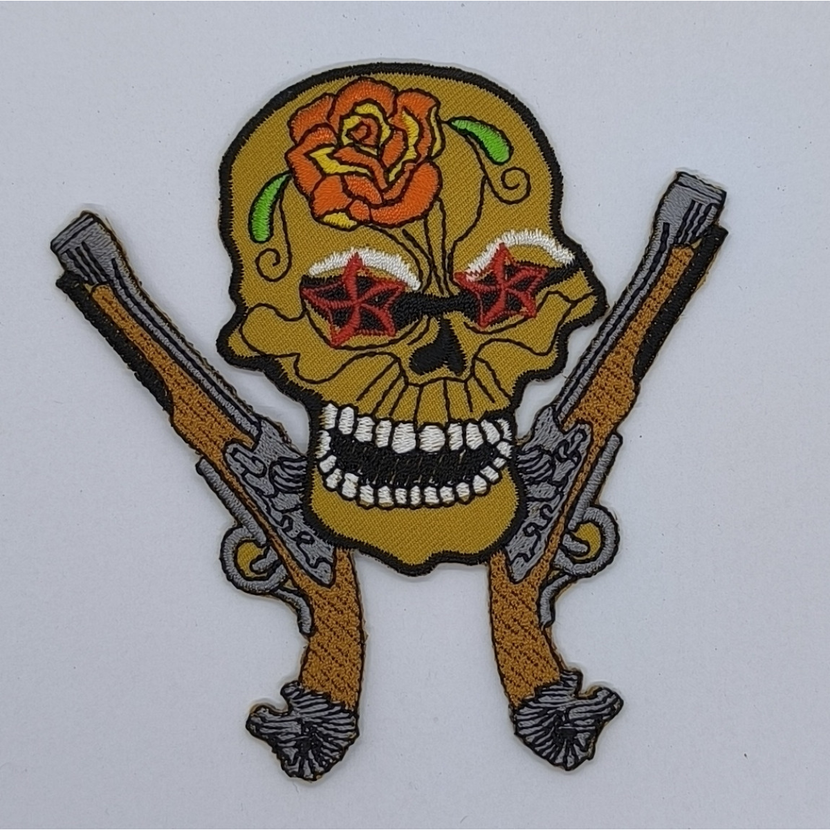 Аплікація для одягу байкерська. Череп із пістолетами.