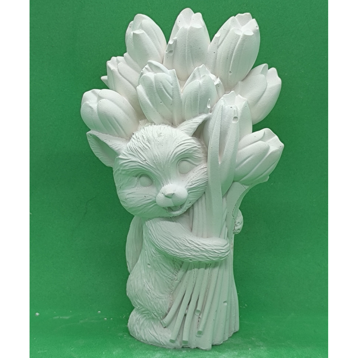 Гіпсова фігурка для розмальовування. Лисеня з тюльпанами.