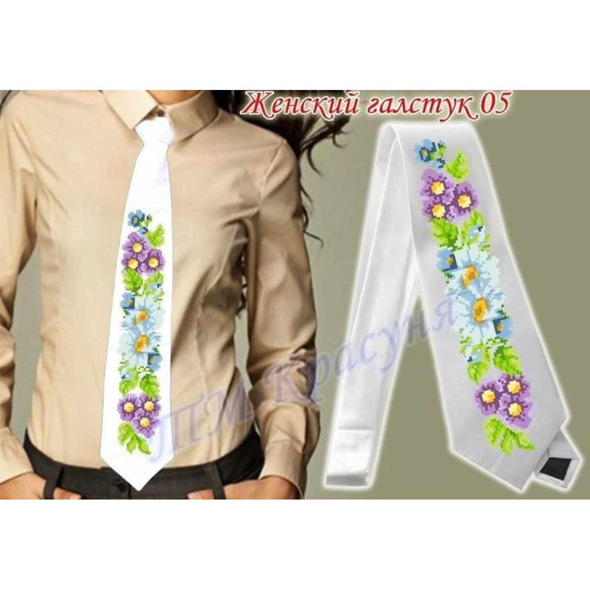 Заготівка жіночої краватки під вишивку бісером. Квіткове різноманіття.