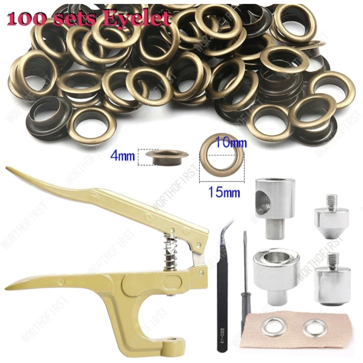 Пристрій для встановлення люверсів 10-15 мм із люверсами бронзового кольору