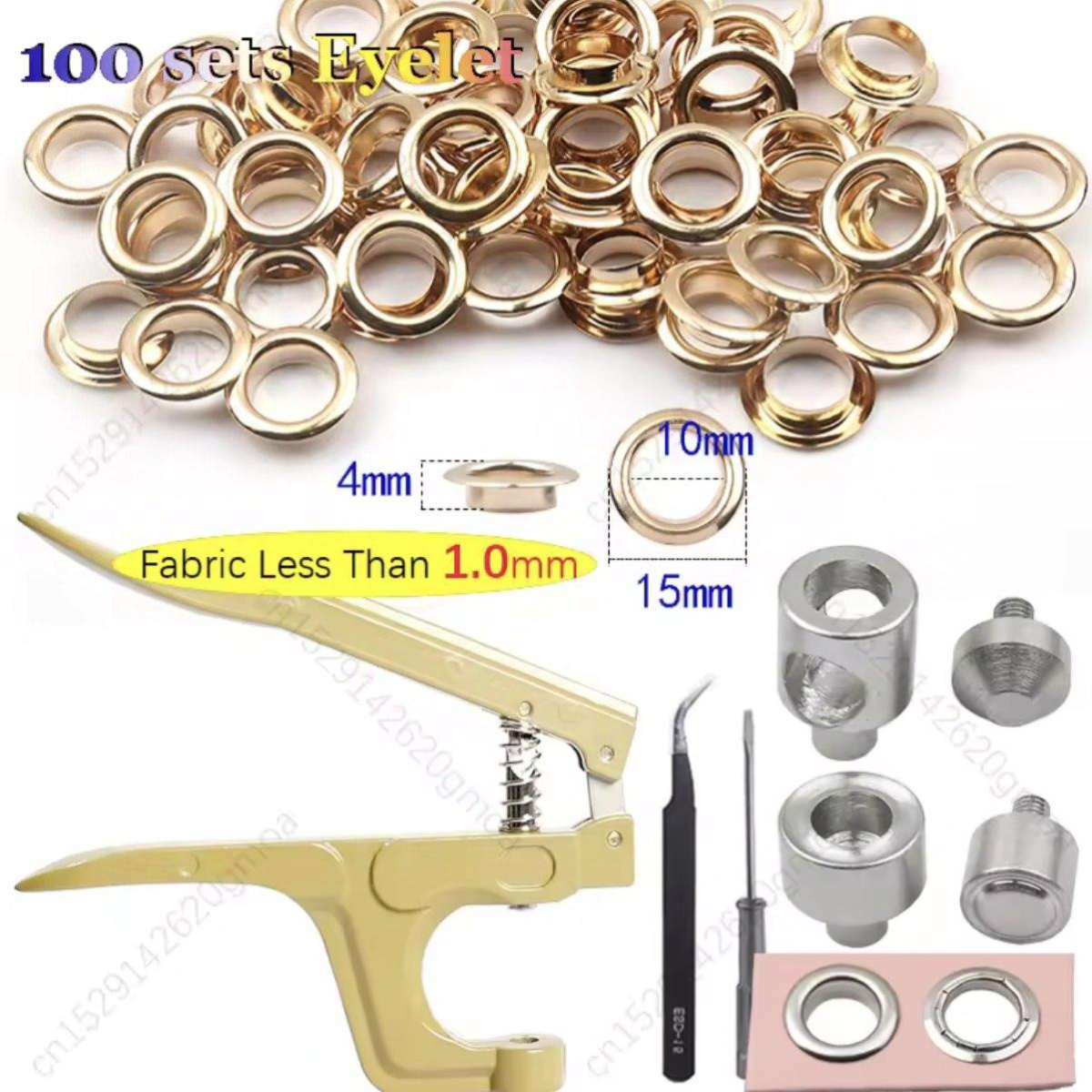 Пристрій для встановлення люверсів 10-15 мм із люверсами золотистого кольору