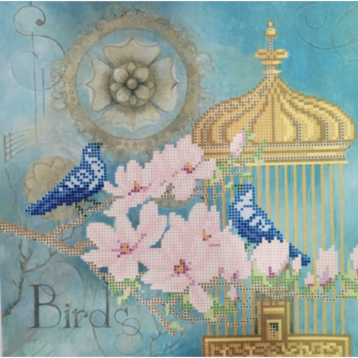 Схема для вишивання бісером. Сині птахи.