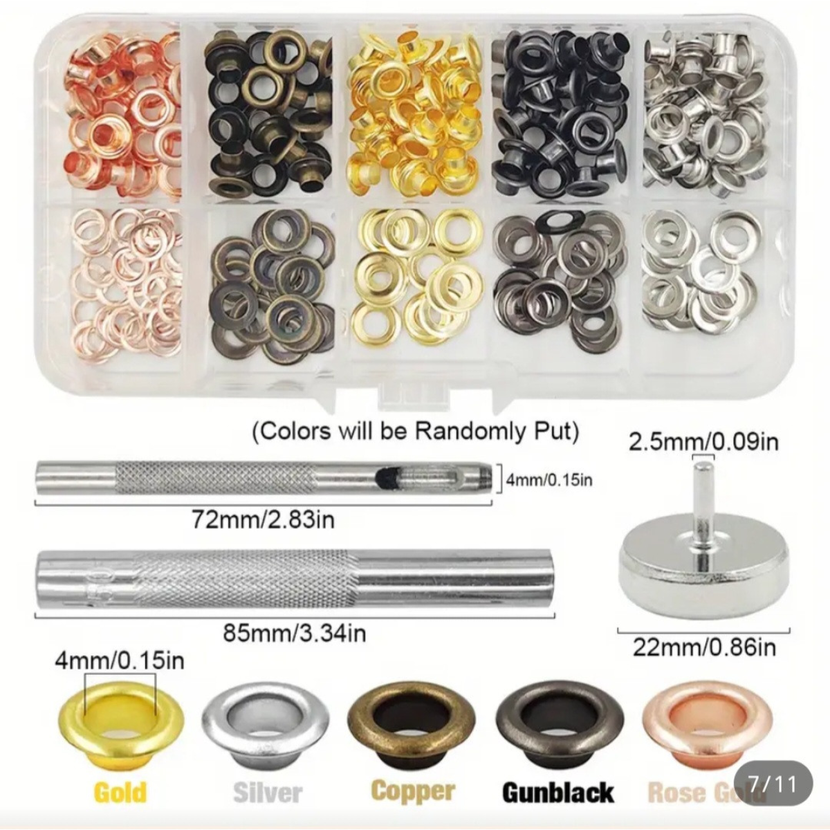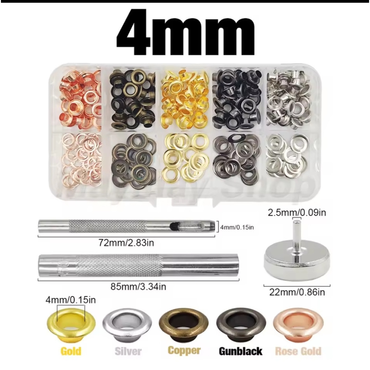 Набір для встановлення люверсів 4 мм з різнобарвними люверсами