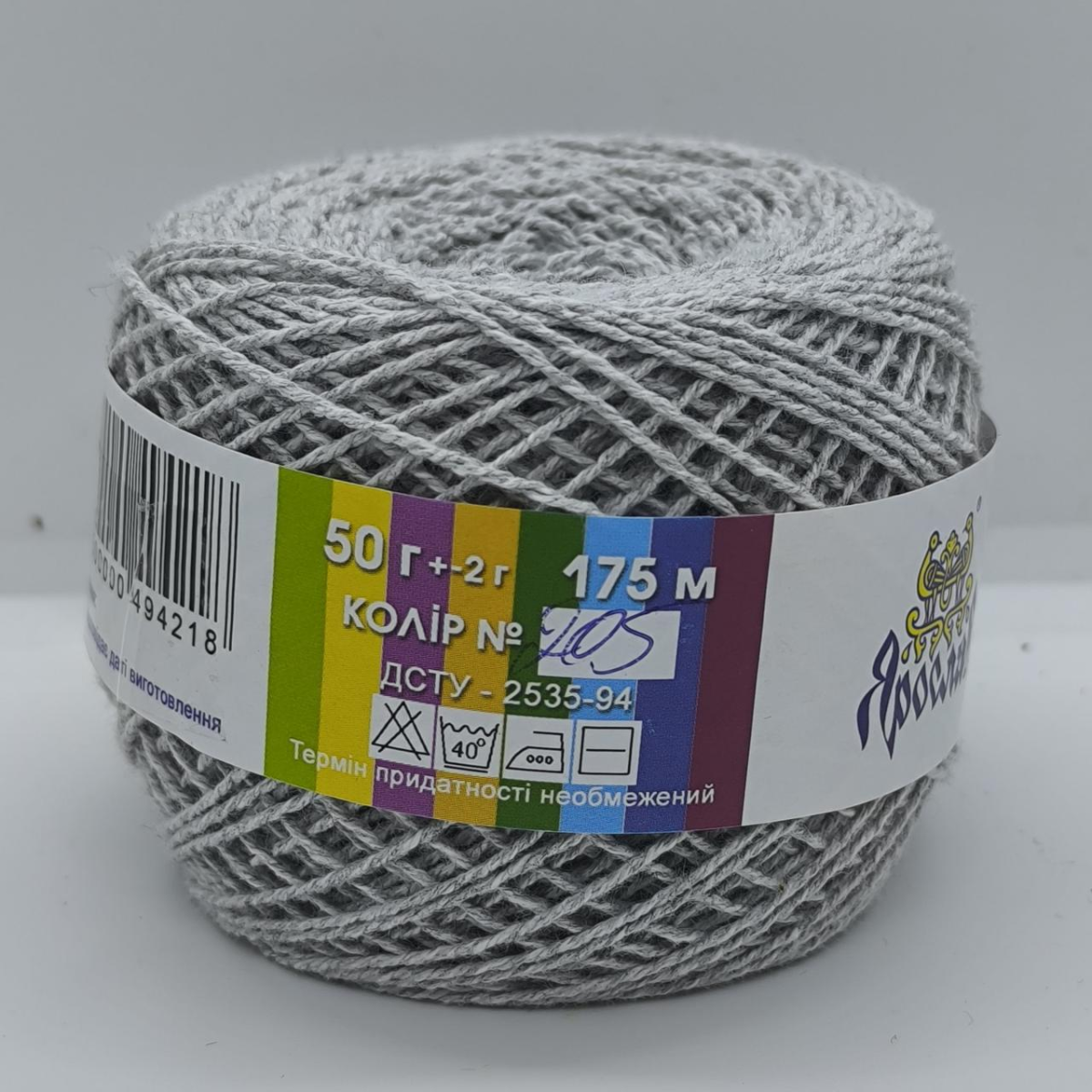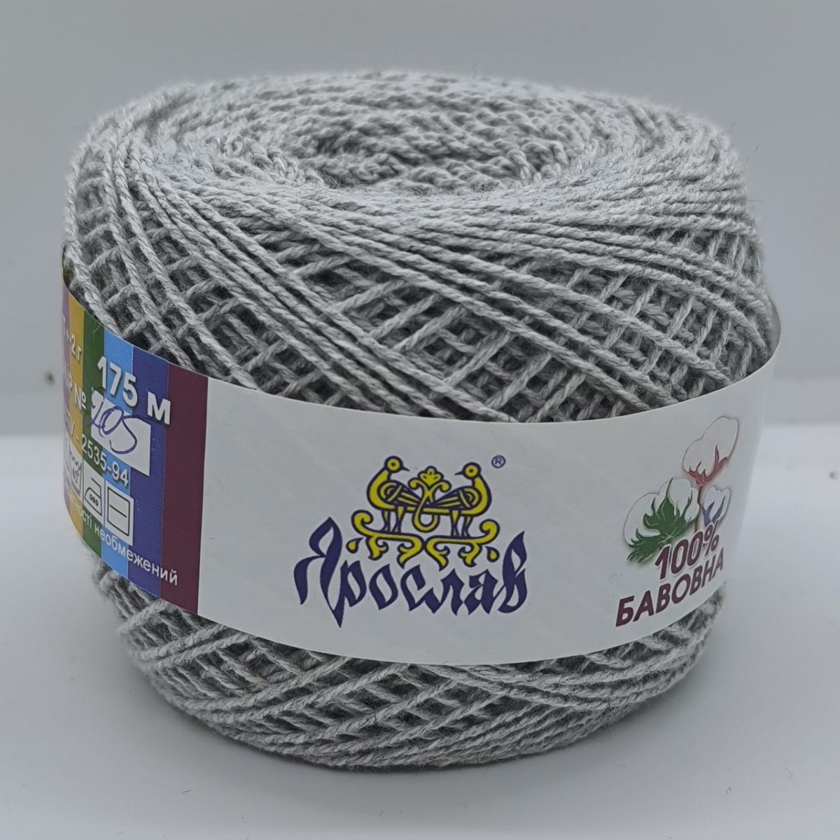 Пряжа бавовняна Ярослав. Колір: світло-сірий 175м