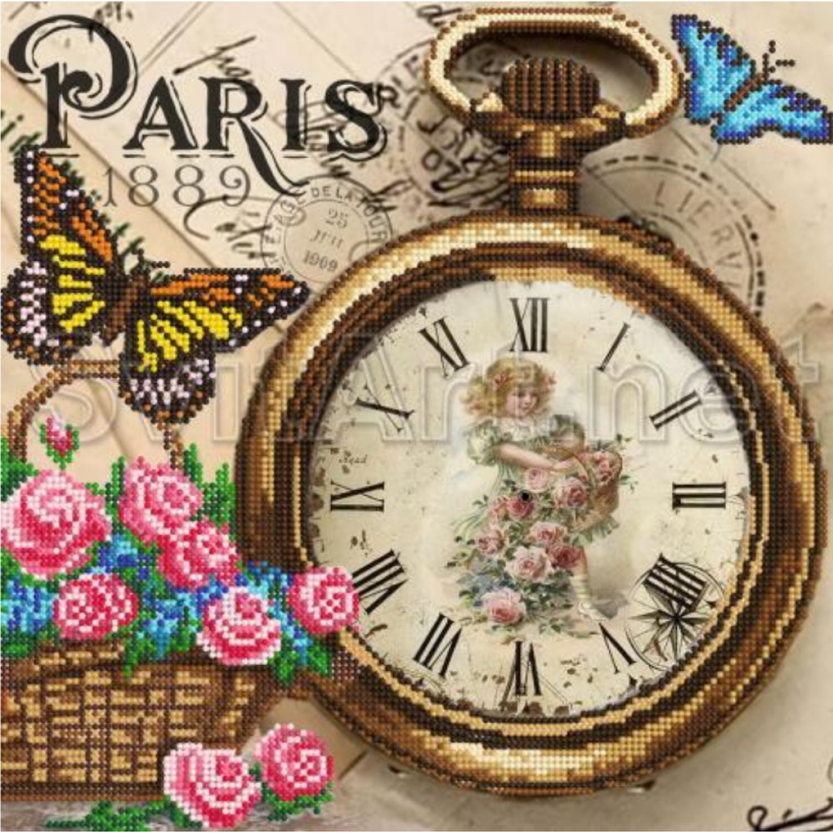 Схема для вишивання бісером. Силуети. Годинник