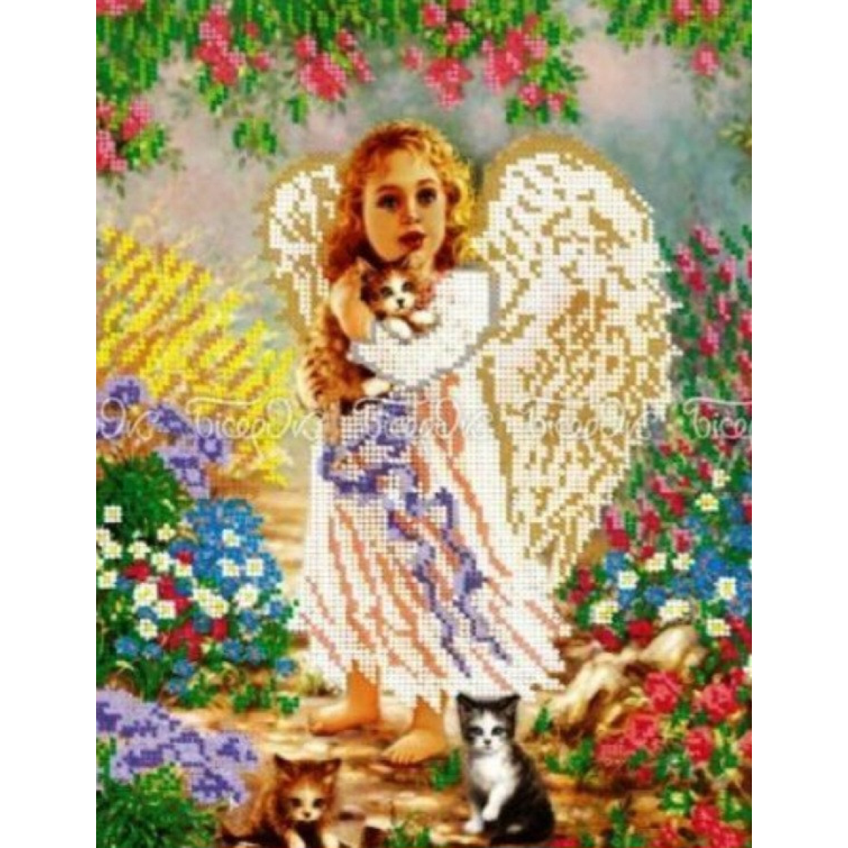 • Схема для вишивання бісером. Ангелочок із кошенятами.