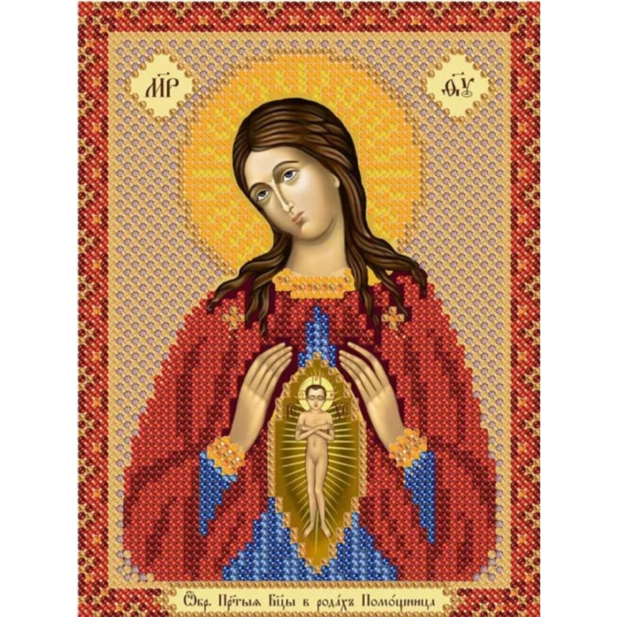 Схема для вишивання бісером ікони Богородиця Помічниця у породах.
