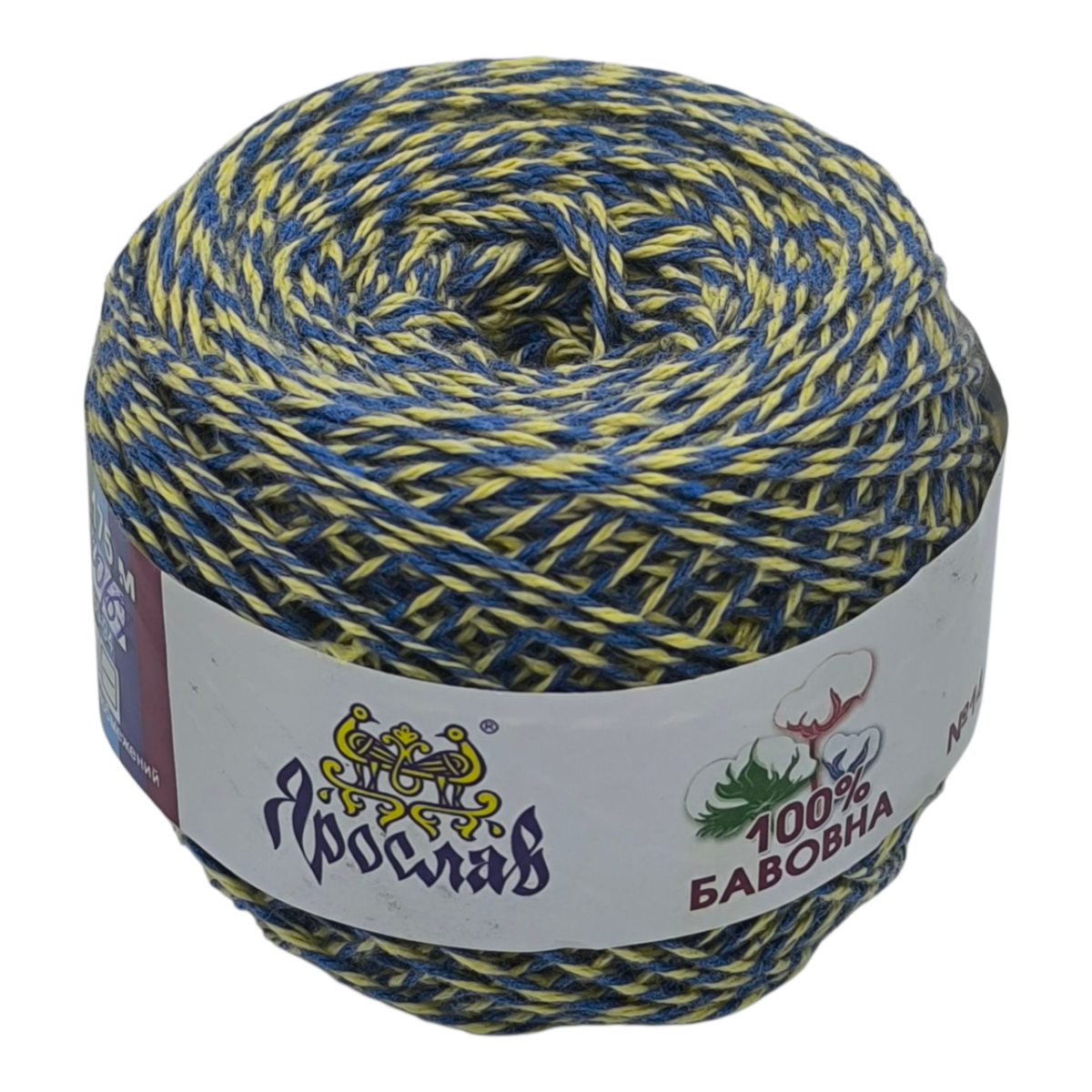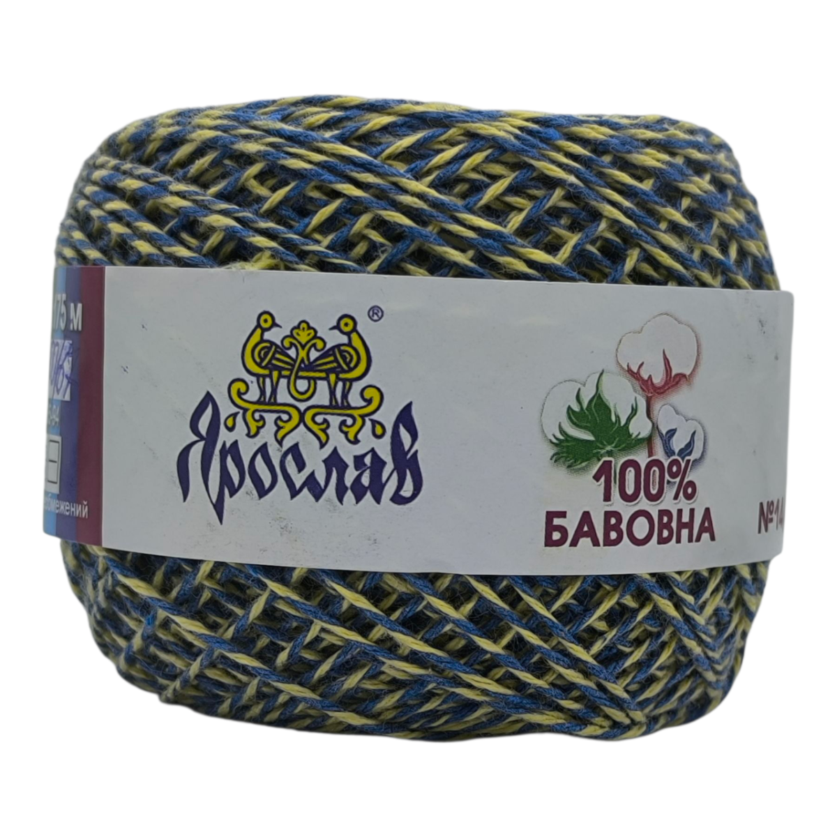 Пряжа бавовняна Ярослав 175 м. Колір: синьо-жовтий
