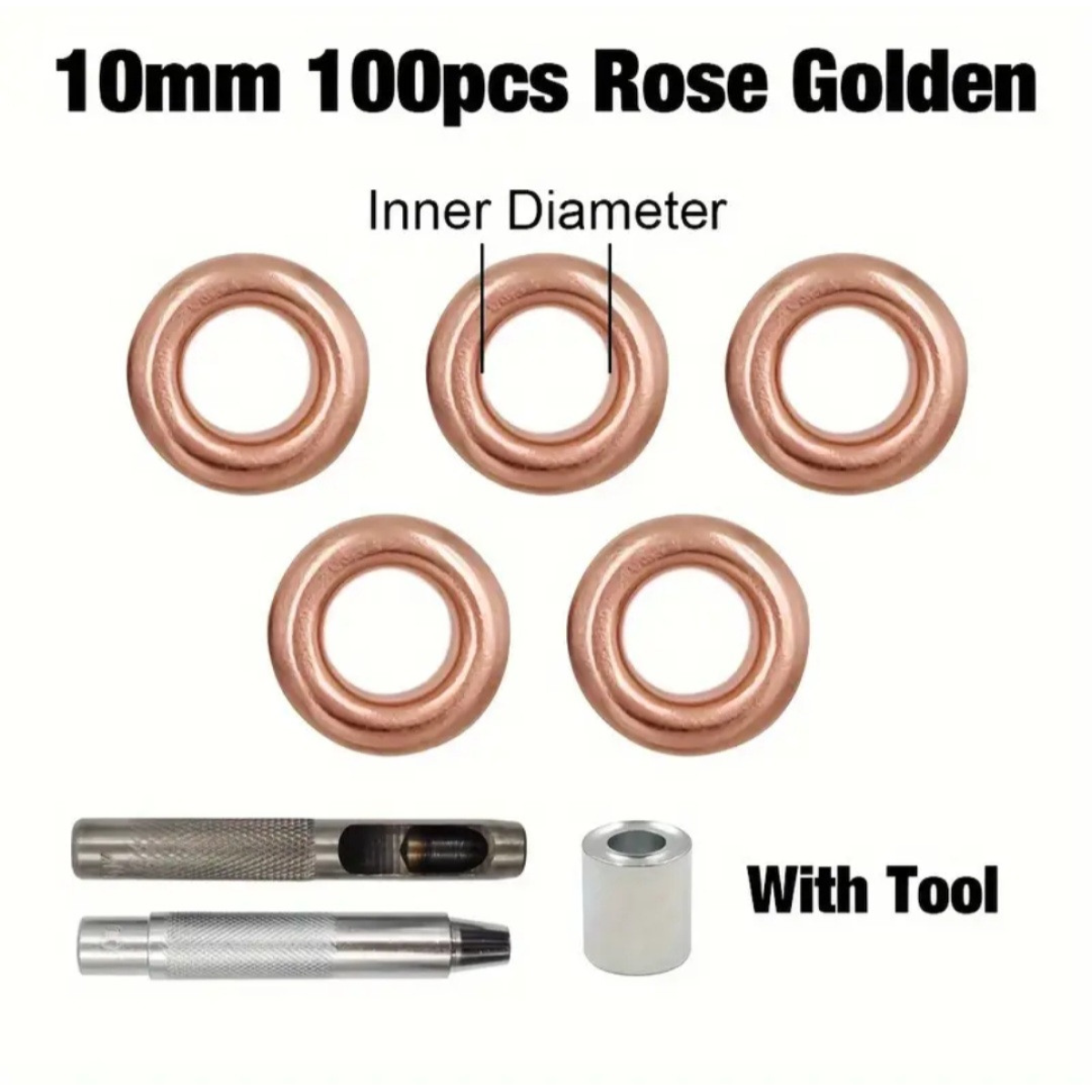 Набір для встановлення люверсів 10-15 мм із золотисто-рожевими люверсами