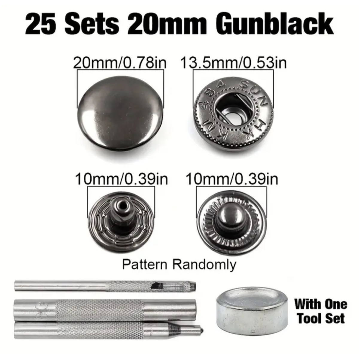 Набір для встановлення кнопок 20 мм чорні