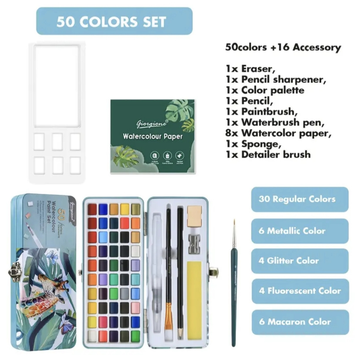 Акварельні фарби з перломутром 50 кольорів.